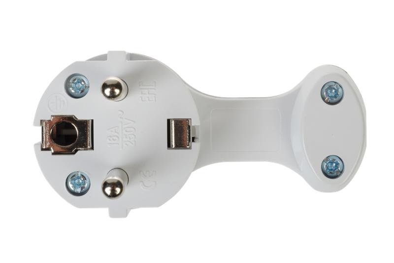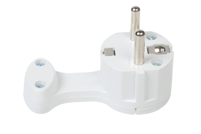 Вилка ABS-пластик угловая плоская (8мм) 16А 250В IP20 бел. Duwi 30476 0