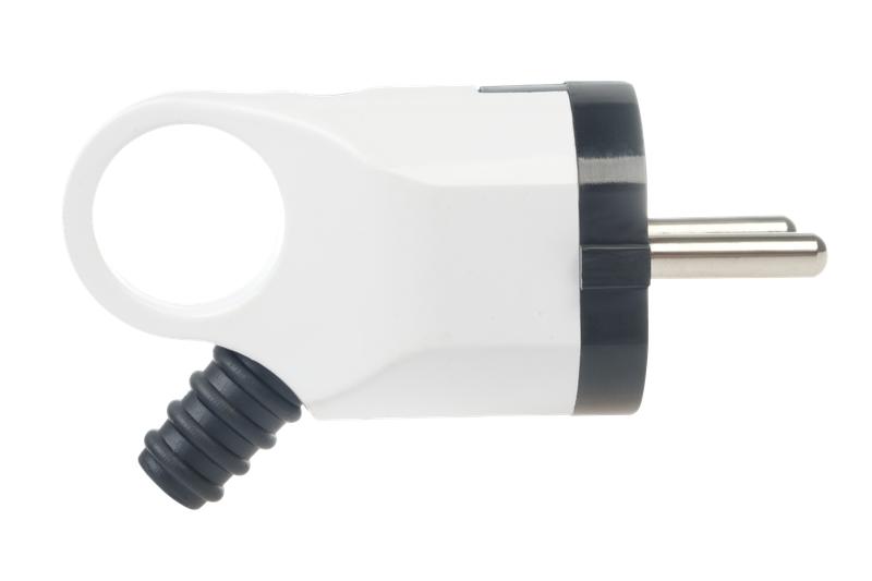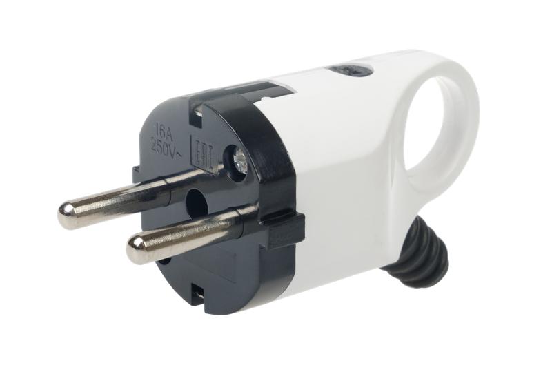 –Вилка ABS-пластик угловая с/з с ушком 16А 250В IP20 бел. Duwi 30467 8