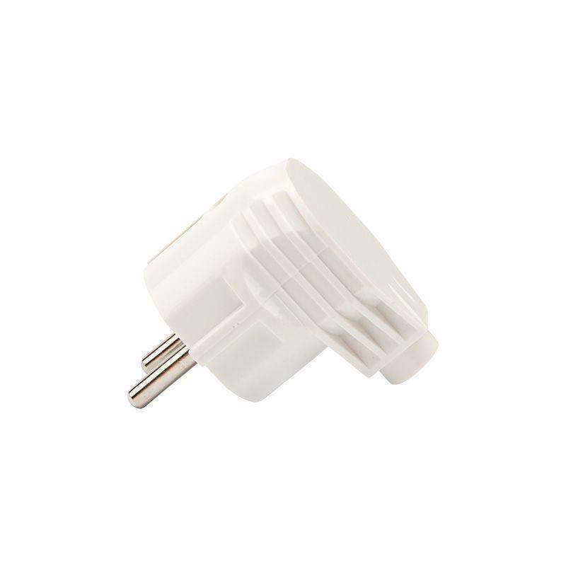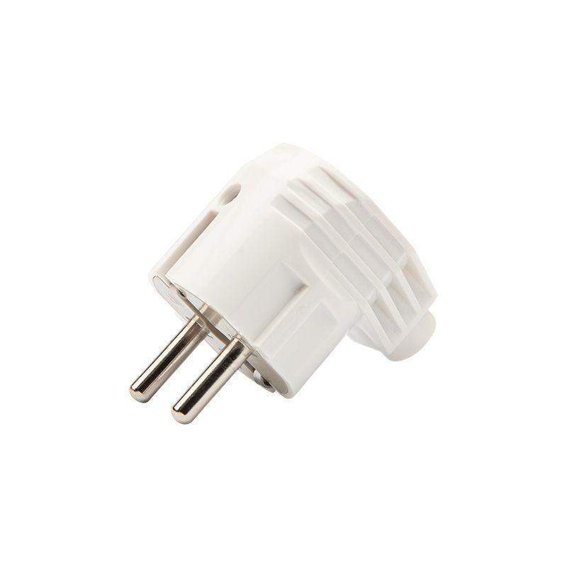 Угловая вилка Евро предназначена для ремонта электрошнура и замены вышедшей из строя неразборной вилки. Используется для подключения различных бытовых приборов к электросети. Походит для проводников сечением от 0,5 до 2,5 мм2. Благодаря угловой конструкции вилка экономит пространство и позволяет удобнее подключаться к розеткам без нагрузки на провод. Вилка оснащена заземляющий контактом, который снижает риск поражения электрическим током при возникновении замыкания. Корпус изготовлен из пластика, отличается прочностью и надежностью. Вилка предназначена для использования только внутри помещения.