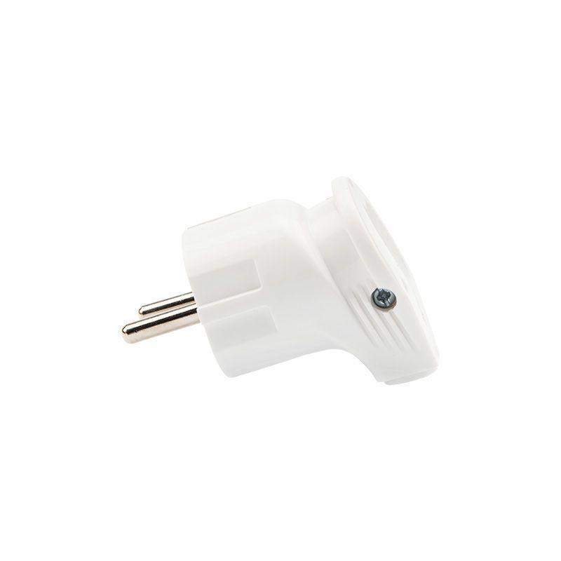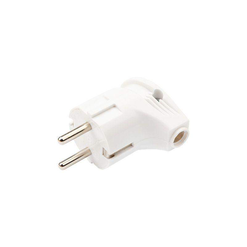 Угловая вилка Евро предназначена для ремонта электрошнура и замены вышедшей из строя неразборной вилки. Используется для подключения различных бытовых приборов к электросети. Походит для проводников сечением от 0,5 до 2,5 мм2. Благодаря угловой конструкции вилка экономит пространство и позволяет удобнее подключаться к розеткам без нагрузки на провод. Вилка оснащена заземляющий контактом, который снижает риск поражения электрическим током при возникновении замыкания. Корпус изготовлен из пластика, отличается прочностью и надежностью. Вилка предназначена для использования только внутри помещения.