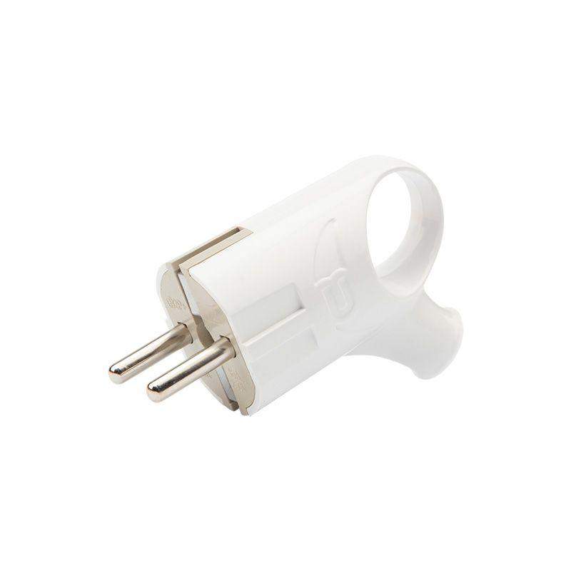 Угловая вилка Евро предназначена для ремонта электрошнура и замены вышедшей из строя неразборной вилки. Используется для подключения различных бытовых приборов к электросети. Походит для проводников сечением от 0,5 до 2,5 мм2. Благодаря угловой конструкции вилка экономит пространство и позволяет удобнее подключаться к розеткам без нагрузки на провод. Кольцо на корпусе позволяет безопасно и аккуратно извлекать вилку из розетки. Вилка оснащена заземляющий контактом, который снижает риск поражения электрическим током при возникновении замыкания. Корпус изготовлен из пластика, отличается прочностью и надежностью. Вилка предназначена для использования только внутри помещения.