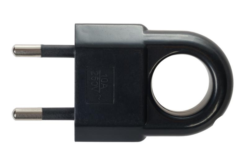 –Вилка пластиковая прямая (евровилка CEE 7/16) б/з с кольцом 10А 250В IP20 черн. Duwi 30475 3