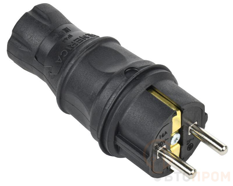 Вилка прямая 16А 2P+PE 230В IP44 каучук черн. EKF RPS-011-16-230-44