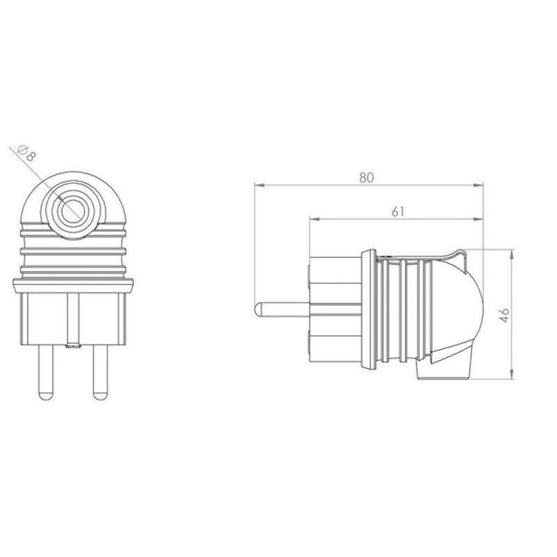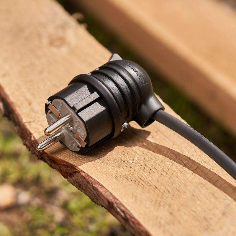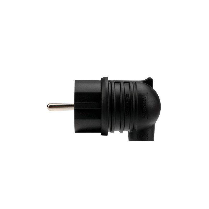 Угловая влагозащищенная электрическая вилка предназначена для подключения бытовых и профессиональных приборов к электросети. Вилка разработана для использования в сложных эксплуатационных условиях с высокой влажностью. Широко применяется в быту, на производстве и в строительстве. Степень защиты IP44 позволяет использовать вилку для организации электропитания под открытым небом, а в дождь – под навесом. Не допускается погружение в воду. Угловая форма вилки облегчает подключение в ограниченном пространстве и уменьшает износ кабеля. Для обеспечения безопасности детали, соприкасающиеся с токоведущими частями выполнены из огнеупорного материала, устойчивого к температуре до +850 ?С. Ударопрочный разборный корпус выполнен из каучука: устойчив к ударам, вибрациям и другим механическим воздействиям. Заземление: есть. Сечение проводников: 0,75-2,5 мм2. Контактная группа: MS-58 (латунь). Тип полюсов: 2Р+РЕ.