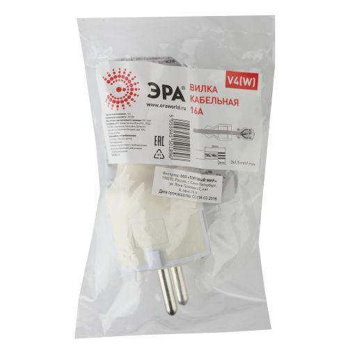 Вилка штепсельная ЭРА, с заземлением, максимальная мощность - 16 A/3500 В (кабель до 3x1.5мм2), поликарбонат