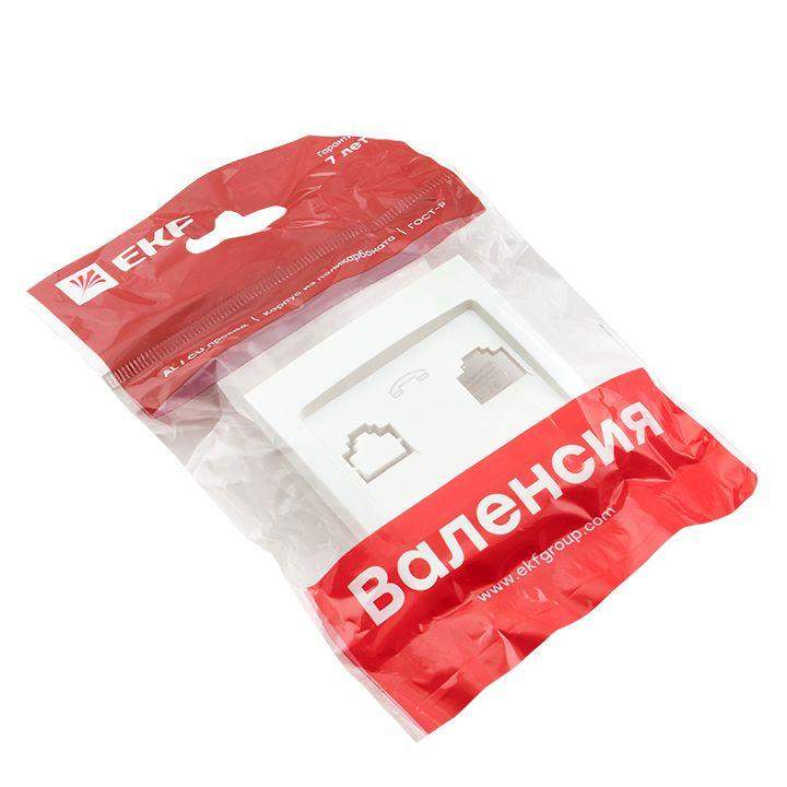 Лицевая панель двухместной розетки RJ11 EKF серии Валенсия устанавливается на соответствующий механизм. Панель выполнена из поликарбоната, устойчивого к ультрафиолетовому излучении.