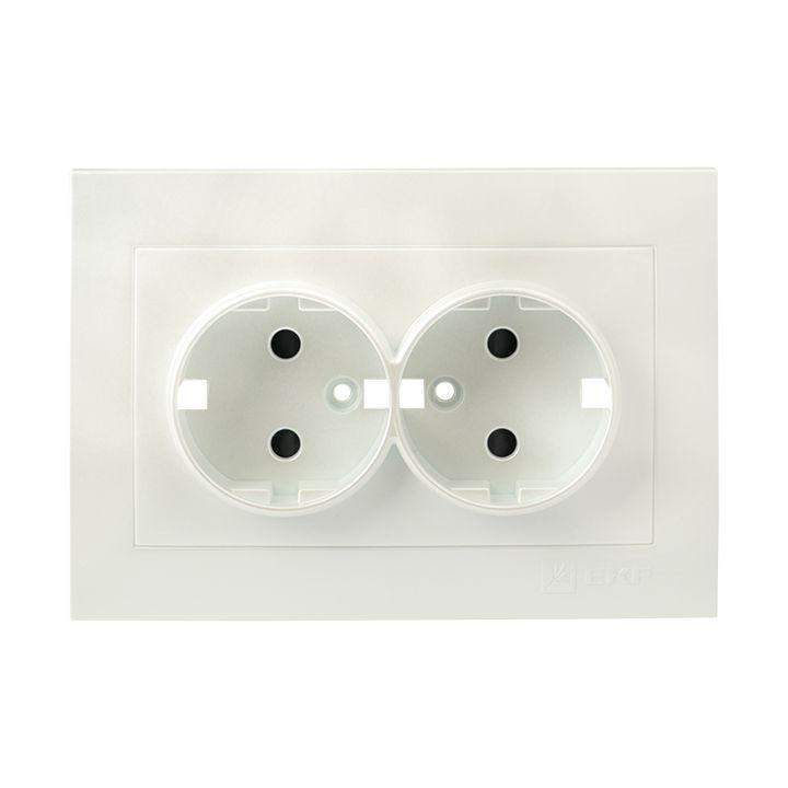 Лицевая панель двухместной розетки EKF серии Валенсия устанавливается на соответствующий механизм. Панель выполнена из поликарбоната, устойчивого к ультрафиолетовому излучению.