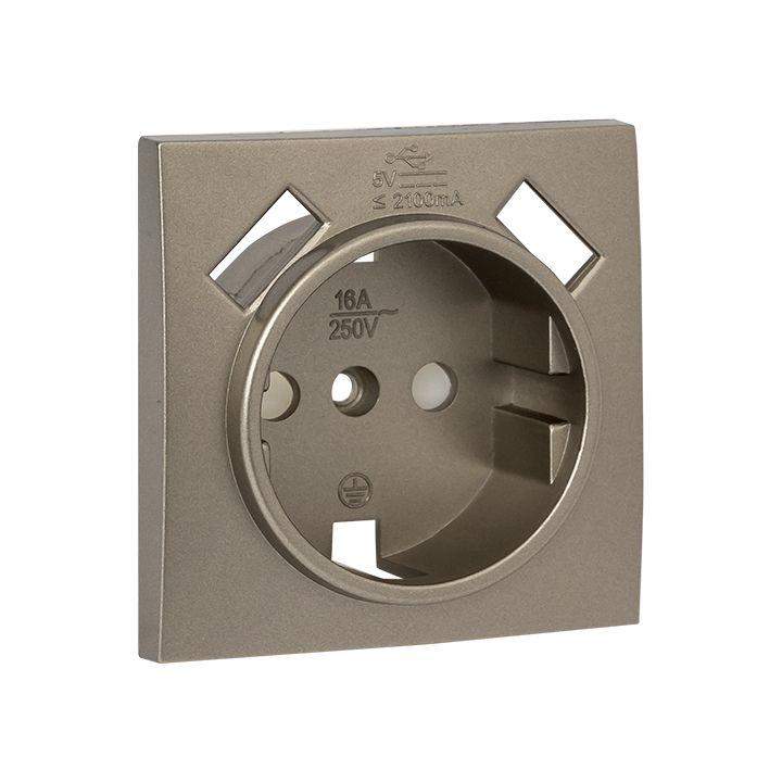 Панель лицевая Валенсия для розетки 1-м 16А защ. шторки с заземл. кашемир с 2 USB 2.1А PROxima EKF ESR16-L-028-40-2USB
