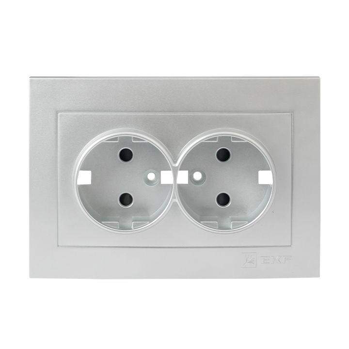 Лицевая панель двухместной розетки EKF серии Валенсия устанавливается на соответствующий механизм. Панель выполнена из поликарбоната, устойчивого к ультрафиолетовому излучению.