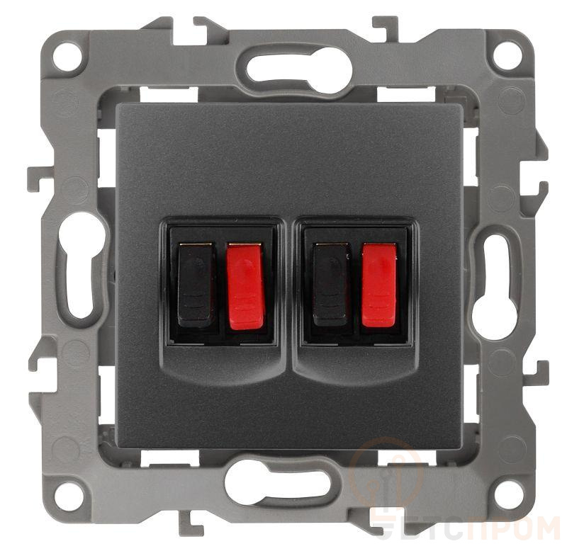 Розетка двойная аудио стерео серии Эра 12 скрытой установки механизм цвет графит 12-3112-12. Сделана из поликарбоната. Монтаж в подрозетник производится и на лапки, и на винты. Рамки приобретаются отдельно. Рамки Эра 12: 1 пост 12-5001-хх, 2 поста 12-5002-хх, 3 поста 12-5003-хх, 4 поста 12-5004-хх, 5 постов 12-5005-хх. Рамки Эра 12 Сатин: 1 пост 12-5101-хх, 2 поста 12-5102-хх, 3 поста 12-5103-хх, 4 поста 12-5104-хх, 5 постов - 12-5105-хх (хх - код цвета: 01-белый, 02-слоновая кость, 03-алюминий, 04-шампань, 05-антрацит, 06-чёрный, 07-ольха(белёный дуб-сатин), 08-вишня, 09-дуб, 10-венге, 11-сосна, 21-жёлтый, 22-оранжевый, 23-красный, 24-охра, 25-бордо, 26-лайм, 27-зелёный, 28-голубой, 29-синий).