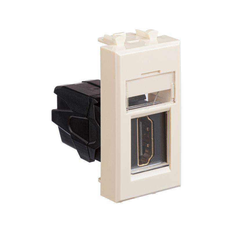 ЭУИ "Avanti" – это образец сочетания передового дизайна и высокой надежности. Их можно применять как на промышленных объектах, так и в жилых помещениях с дизайнерским ремонтом. Эта серия была вдохновлена традициями русского авангарда начала XX века. В состав системы входят: каркасы, механизмы и рамки. Модульные изделия монтируются не непосредственно в стену, а в кабель-каналы, напольные башенки или лючки. Это позволяет создавать уникальный набор приборов, который будет соответствовать потребностям потребителя. Модульная HDMI розетка может устанавливаться в систему кабельных коробов "In-liner Front", систему организации рабочих мест "Sotto" и применяется для подключения HDMI-кабеля. Пластиковые части изделия имеют цвет "Ванильная дымка", дарящий ощущение уюта и нежности.