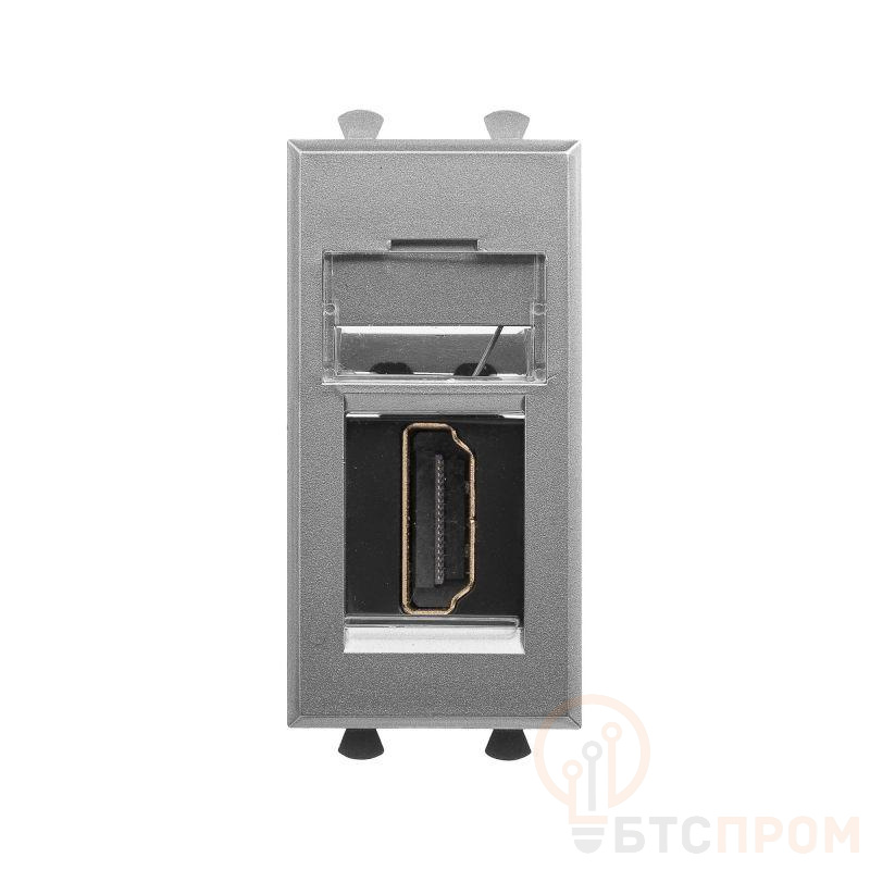 HDMI розетка модульная. Назначение: для монтажа в систему кабельных коробов "In-liner Front" и систему организации рабочих мест "Sotto" при помощи рамок-суппортов и каркасов "Avanti" (код 4400912 и т.д.); подключение HDMI кабеля к рабочему месту. Характеристики: с пылезащитной шторкой; с маркировочной табличкой; в комплекте разъем Keystone; для заделки контактов используется инструмент типа 110; тип розетки – "А-А" или "мама-мама"; фиксация в подрозеточные коробки глубиной не менее 45 мм при помощи каркаса с лапками (код 4400802) и саморезов. Кол-во модулей: 1. Цвет: "Закаленная сталь"