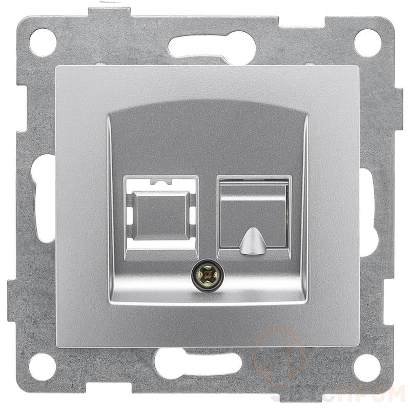 Розетка телефонная 1-м СП Bravo RJ12 механизм серебр. GUSI С10Т1-004 фото в каталоге от BTSprom.by
