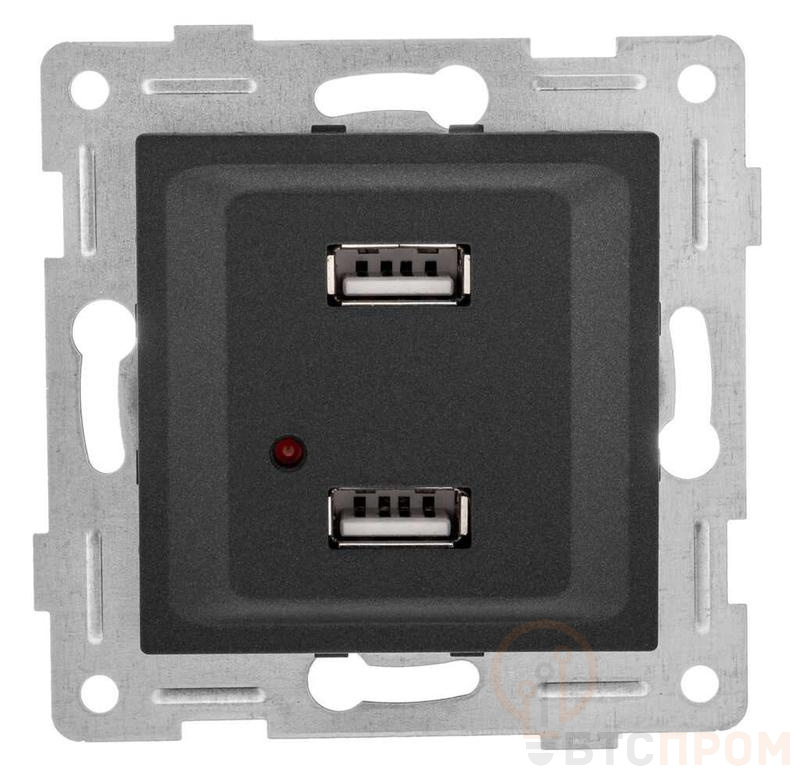 Розетка USB 2-м СП Ugra механизм графит GUSI С11USB2-010 фото в каталоге от BTSprom.by