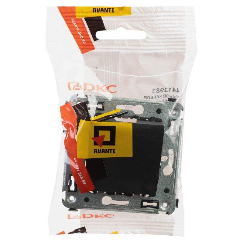 Вывод кабеля из стены. Назначение: для монтажа в подрозеточные коробки (код 59301); для вывода и фиксации кабеля. Количество модулей: 2. Цвет: "Черный матовый".