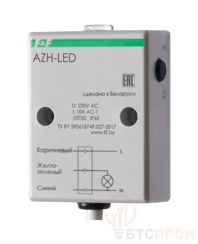 Фотореле AZH-LED (встроенный фотодатчик для светодиодных ламп и нагрузок с большим пусковым током (120А/20мс) монтаж на плоскость IP65) F&F EA01.001.017