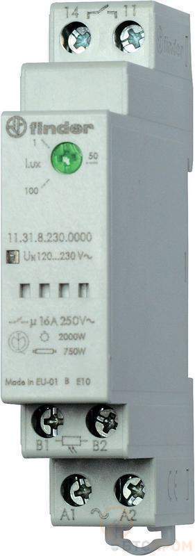 Фотореле модульное с фотоэлементом 011.02 монтаж на рейку 35мм 1NO 16А 230В AC 1…100люкс 17.5мм фотореле IP20/фотоэлемент IP54 FINDER 113182300000