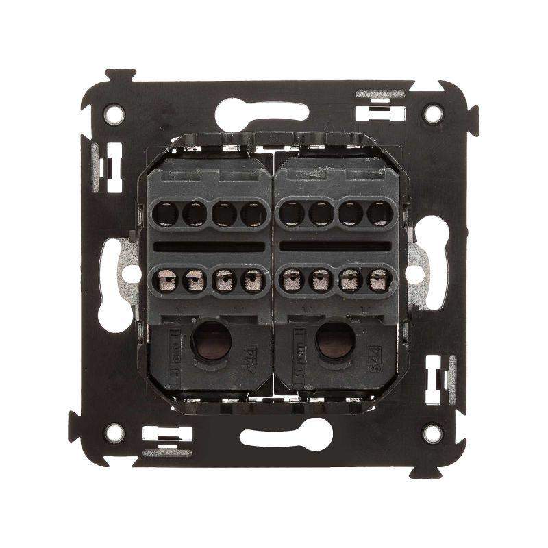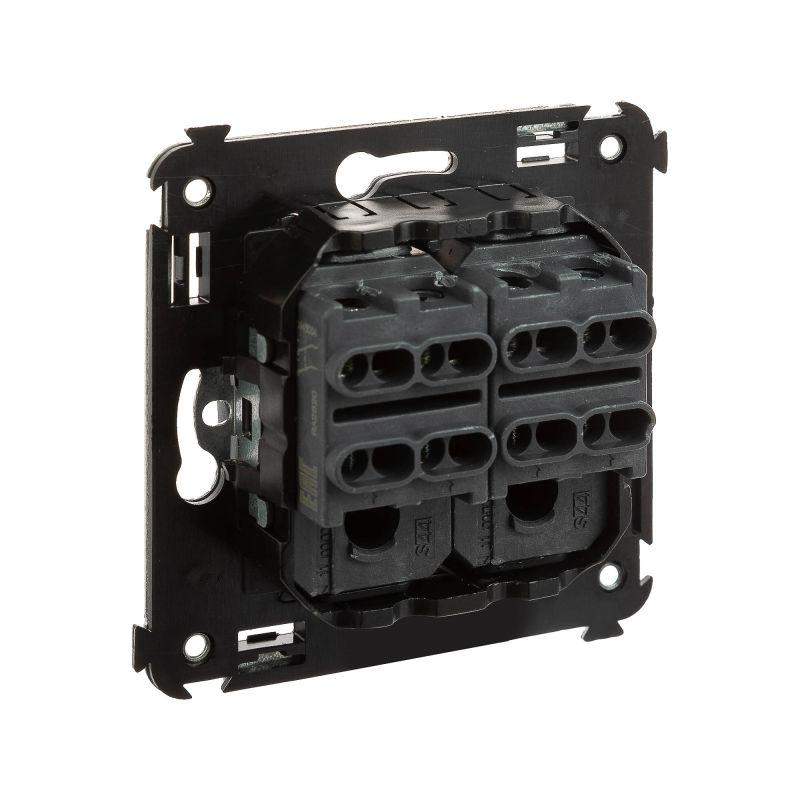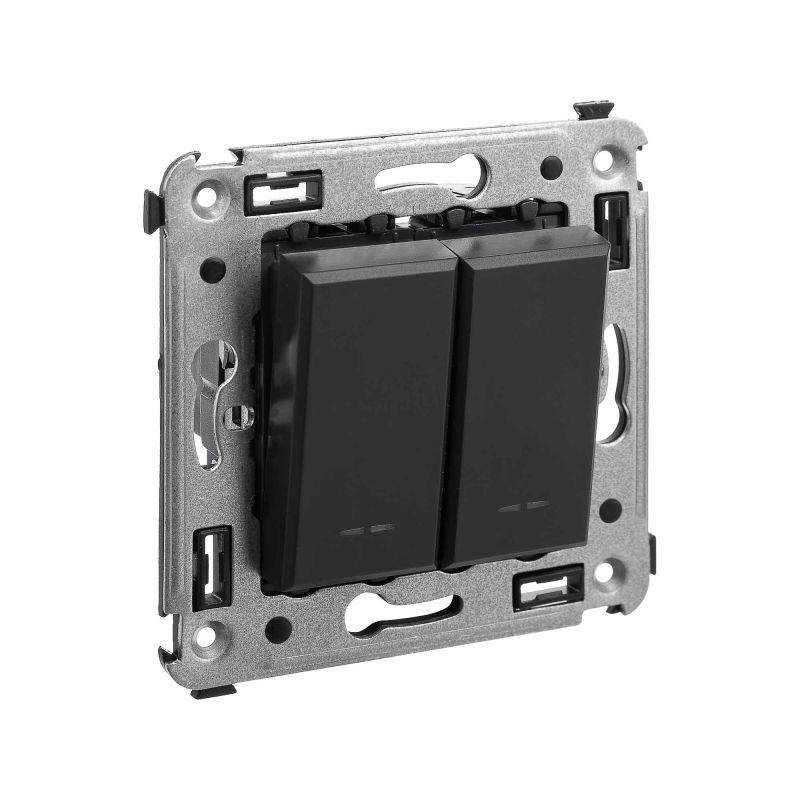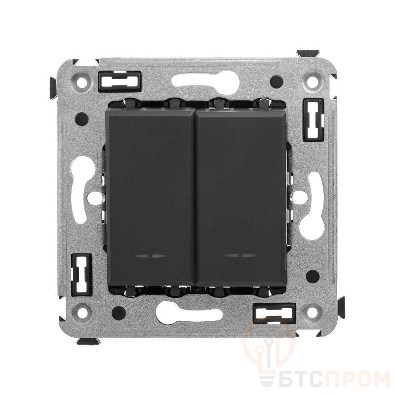 Инвертор двухклавишный. Назначение: для монтажа в подрозеточные коробки глубиной не менее 45 мм (код 59301). Используется для включения/выключения освещения из трех и более мест. Характеристики: 2 модуля, диаметр отверстий для ввода кабелей – 3 мм (по 2 отверстия на одну клемму); винтовые зажимы; шаблон для зачистки кабеля – 11 мм; номинальный ток – 16 A; номинальное напряжение – 230 В. Фиксация производится в подрозеточную коробку при помощи саморезов. Цвет: "Черный матовый". Производитель оставляет за собой право вносить во внешний вид изделия изменения, которые не влияют на его функционал, безопасность и надежность.