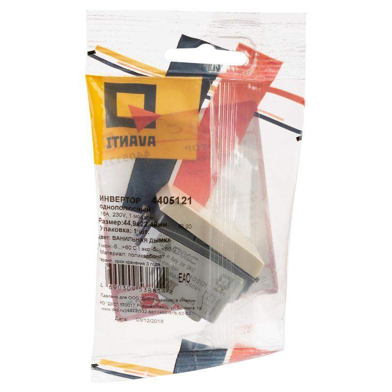 Инвертор модульный. Предназначен для монтажа в систему кабельных коробов "In-liner Front" и систему организации рабочих мест "Sotto" (алюминиевые кабель-каналы, колонны, башенки и лючки) при помощи рамок-суппортов и каркасов "Avanti" (код 4400912 и т.д.). Используется для включения/выключения освещения из трех и более мест. Диаметр отверстий для ввода кабелей – 3 мм (по 2 отверстия на одну клемму). Винтовые зажимы. Шаблон для зачистки кабеля – 11 мм. Номинальный ток – 16 A. Номинальное напряжение – 230 В. Фиксация производится в подрозеточные коробки при помощи каркаса с лапками (код 4400802) и саморезов. 1 модуль. Цвет: "Ванильная дымка". Производитель оставляет за собой право вносить во внешний вид изделия изменения, которые не влияют на его функционал, безопасность и надежность.