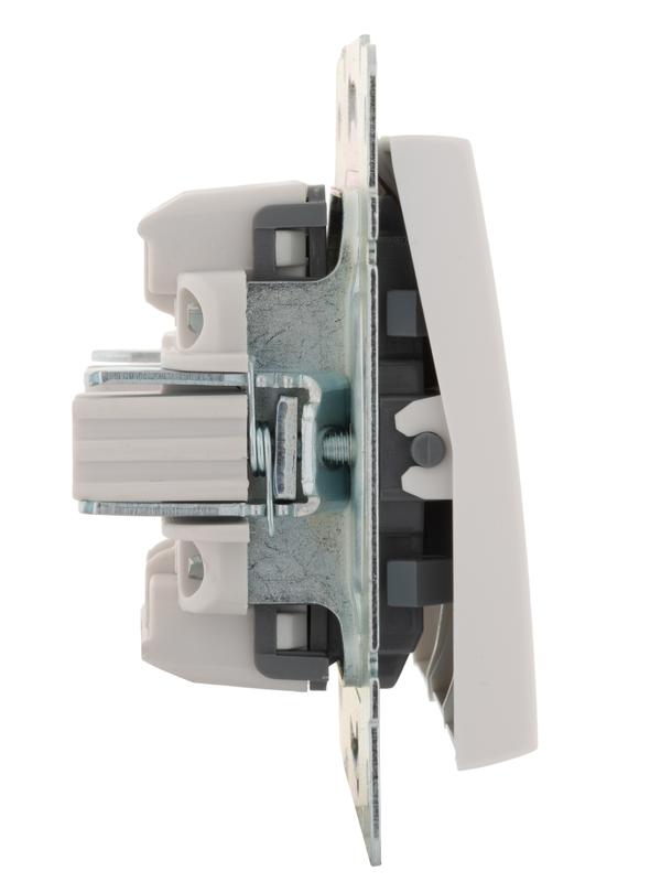 Механизм выключателя выполнен в классическом белом цвете, что позволяет ему гармонично вписаться в большинство интерьеров. С его помощью можно независимо управлять тремя группами освещения, например, основным светом, дополнительной подсветкой и бра в одной комнате или светом в смежных помещениях (ванная, туалет, прихожая).
