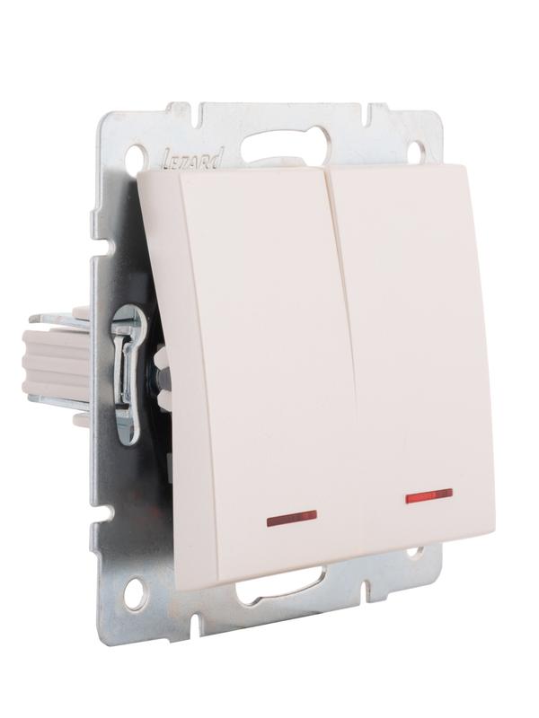 Выключатель 2-кл. СП Rain IP20 с подсветкой механизм жемчуж./бел. перламутр. LEZARD 703-3088-112 фото в каталоге от BTSprom.by