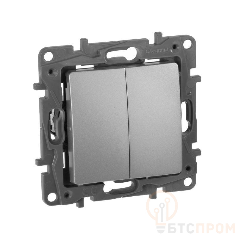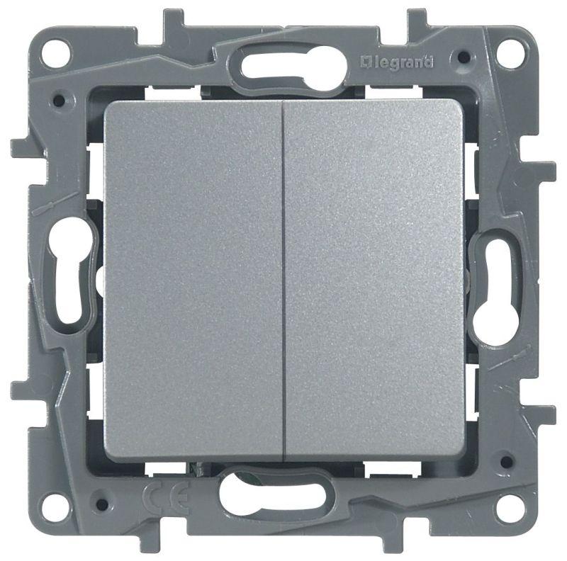 Переключатель двухклавишный ETIKA для скрытого монтажа, номинальный ток 10 А. Предназначен для управления двумя нагрузками с одного или с двух мест.