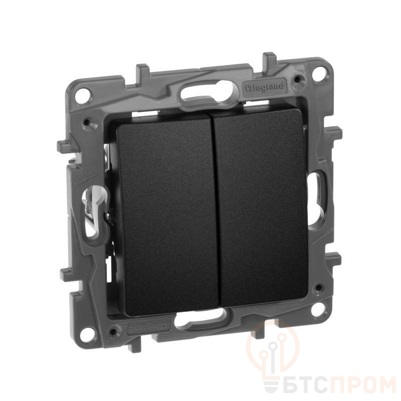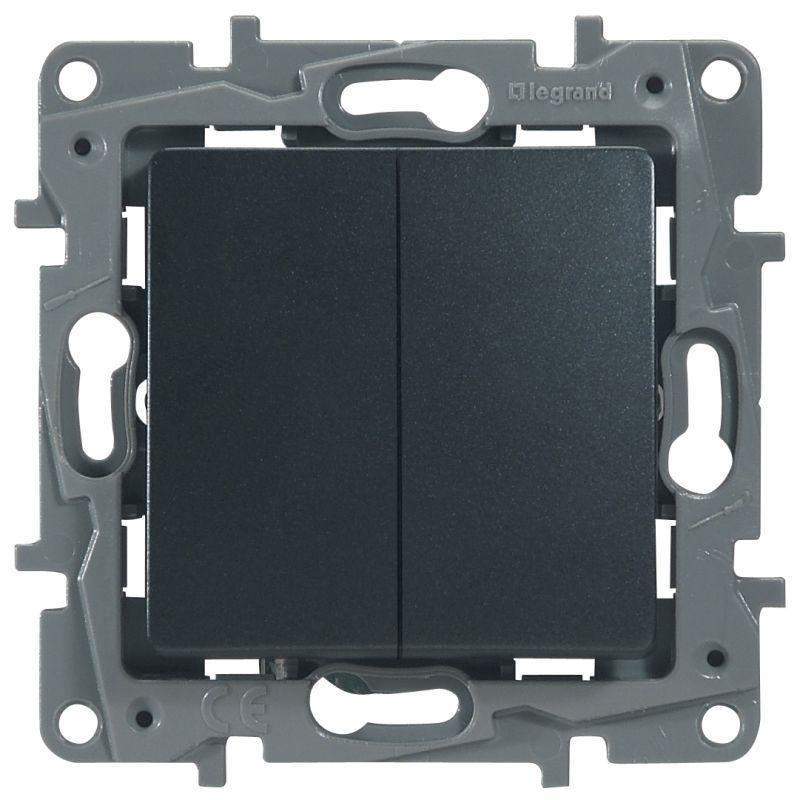 Переключатель двухклавишный ETIKA для скрытого монтажа, номинальный ток 10 А. Предназначен для управления двумя нагрузками с одного или с двух мест.