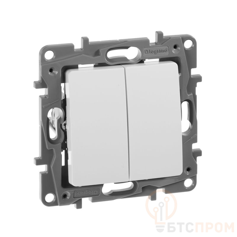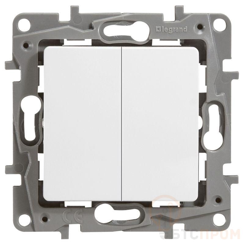 Переключатель двухклавишный ETIKA для скрытого монтажа, номинальный ток 10 А. Предназначен для управления двумя нагрузками с одного или с двух мест.