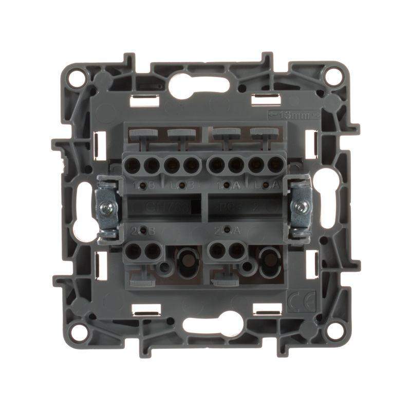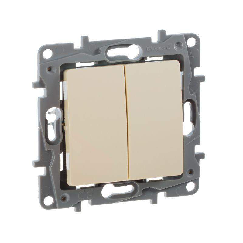 Переключатель двухклавишный ETIKA для скрытого монтажа, номинальный ток 10 А. Предназначен для управления двумя нагрузками с одного или с двух мест.