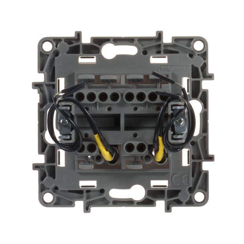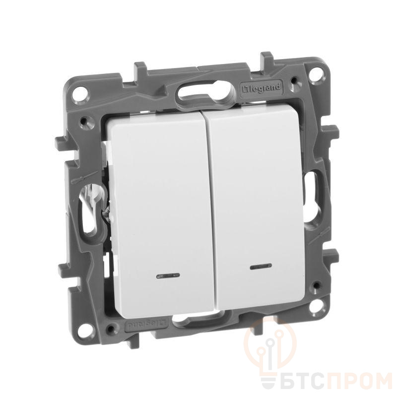 Переключатель с подсветкой двухклавишный ETIKA для скрытого монтажа, номинальный ток 10 А. Предназначен для управления двумя нагрузками с одного или с двух мест.