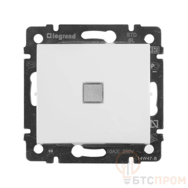 –Переключатель проходной 1-кл. СП Valena 10А IP31 250В с зел. индикацией механизм бел. Leg 774426