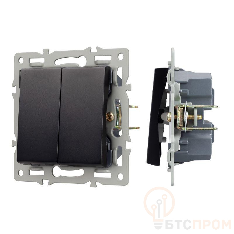 Механизм выключателя клавишный на 1 пост 2 клавиши (непроходной), с суппортом из алюминия. Цвет - черный. Степень пылевлагозащиты - IP20. Устанавливается в стандартный круглый подрозетник 220V (Арт.044895). Рабочее напряжение 110-250V. Макс. ток нагрузки 16А. Габаритные размеры: длина 74 мм, ширина 74 мм, высота 35 мм. Гарантийный срок 10 лет.