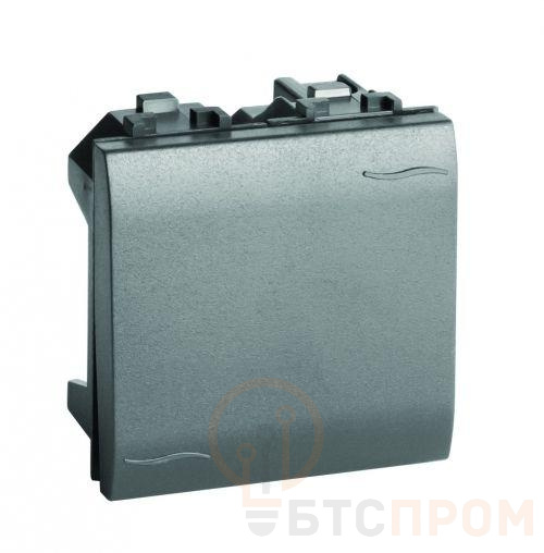 Переключатель (проходной выключатель). Назначение: включение/выключение освещения. Переключатели устанавливаются по 2 шт. на одну цепь для управления освещением из 2-х точек в коридорах, проходах, гостиничных номерах (у входной двери, изголовья кровати), проходных комнатах и т. д. Характеристики: номинальный ток - 16 А; номинальное напряжение - 250 B. Кол-во модулей: 2. Цвет: черный