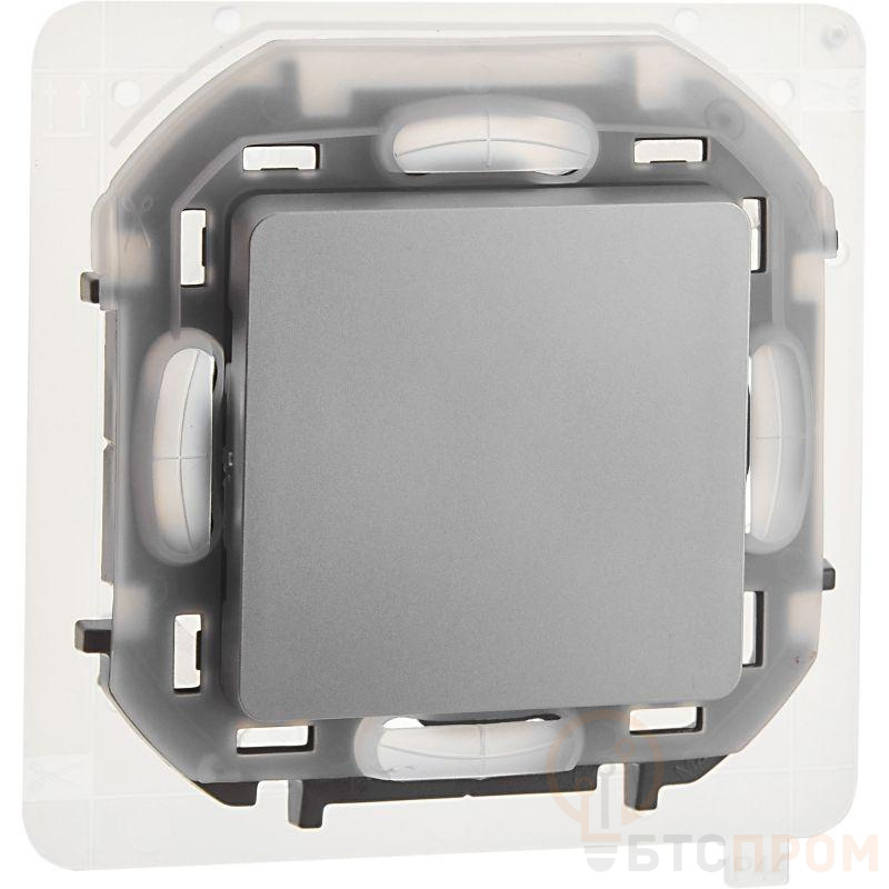Переключатель одноклавишный IP44 скрытого монтажа Inspiria, цвет "Алюминий", номинальный ток 10АХ, напряжение ~250В, безвинтовые зажимы. Устанавливается в жилых и общественных помещениях для управления приборами освещения, вентиляции и т.д. Предназначен для установки в местах с повышенной влажностью (например, ванные комнаты, веранды, кладовки, подвалы, коридоры и т.п.) и используется для управления нагрузкой с одного, двух или более мест (совместно с перекрёстными переключателями).