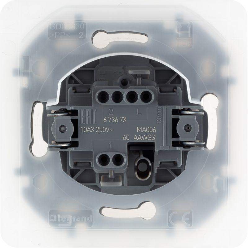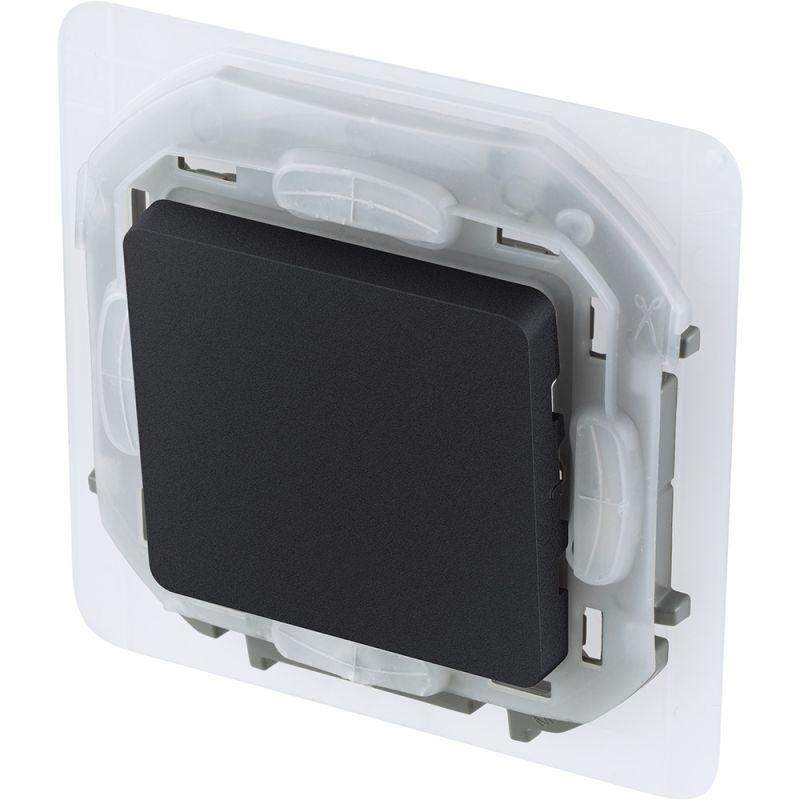 Переключатель одноклавишный IP44 скрытого монтажа Inspiria, цвет "Антрацит", номинальный ток 10АХ, напряжение ~250В, безвинтовые зажимы. Устанавливается в жилых и общественных помещениях для управления приборами освещения, вентиляции и т.д. Предназначен для установки в местах с повышенной влажностью (например, ванные комнаты, веранды, кладовки, подвалы, коридоры и т.п.) и используется для управления нагрузкой с одного, двух или более мест (совместно с перекрёстными переключателями).