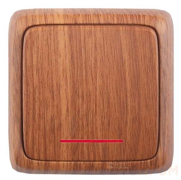 Переключатель 1-кл. ОП Альфа 16А IP20 с индикацией с изолир. пластиной дуб HEGEL ВА16-164-05