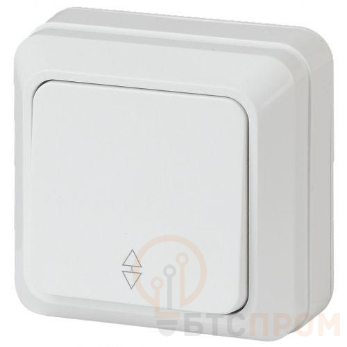 Проходной выключатель (переключатель) 1-клавишный серии Intro Quadro открытой установки цвет белый 2-103-01. Номинальные характеристики 10А 250В . Выключатель выполнен из качественного термопласта, стали и латуни, оснащён винтовыми зажимами.