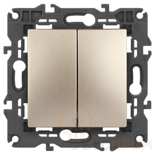 Выключатель 2-клавишный проходной Эра Elegance шампань 14-1106-04. Оснащён автоматическими клеммами для надёжной фиксации жил кабеля в механизме. Рамки приобретаются отдельно.