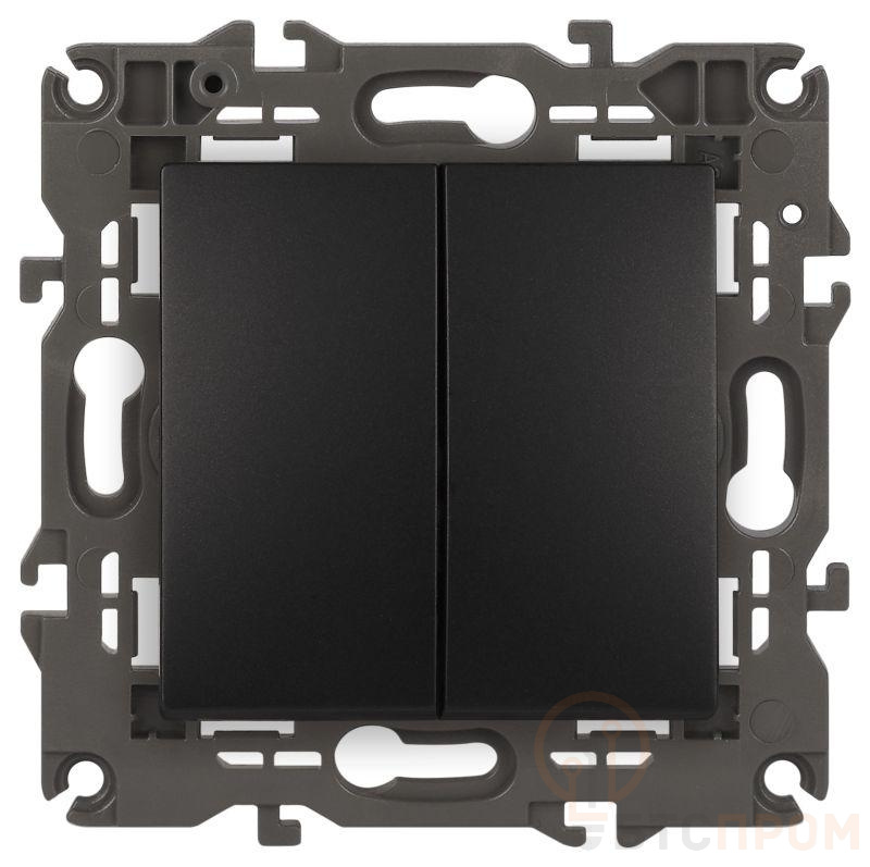 Выключатель 2-клавишный проходной Эра Elegance антрацит 14-1106-05. Оснащён автоматическими клеммами для надёжной фиксации жил кабеля в механизме. Рамки приобретаются отдельно.