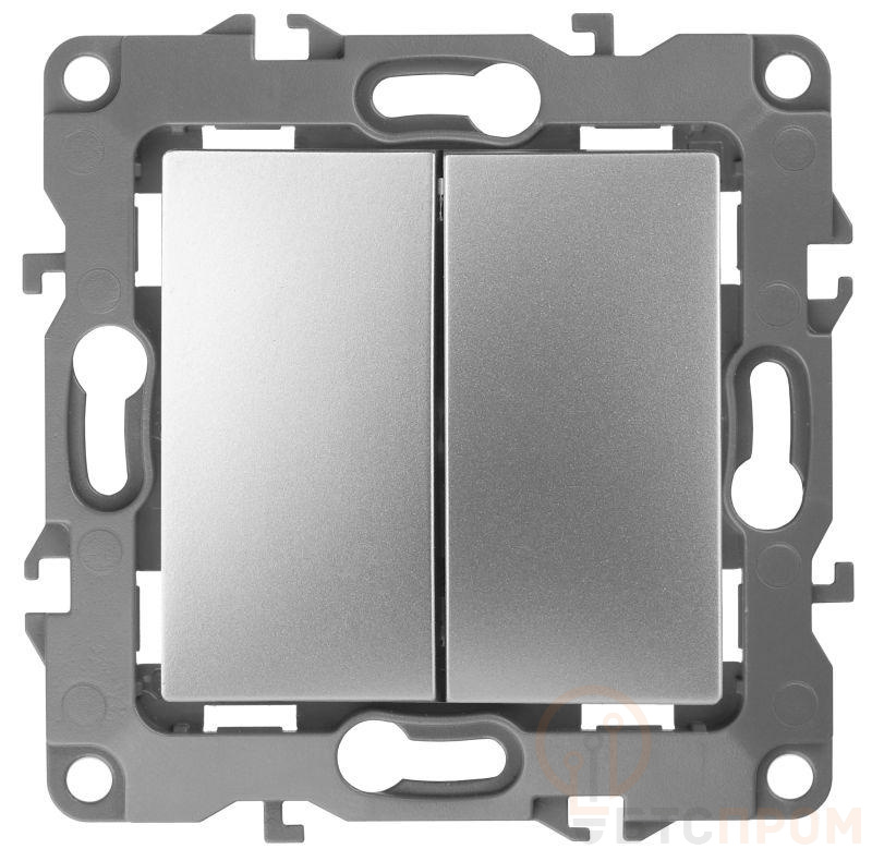 Выключатель 2-клавишный проходной серии Эра 12 скрытой установки механизм цвет алюминий 12-1106-03. Номинальные характеристики 10А 250В . Сделан из поликарбоната, оснащёно автоматическими клеммами для быстрй и надёжной фиксации жил кабеля в механиме. Парные клеммы обеспечивают соединение шлейфом. Монтаж в подрозетник производится и на лапки, и на винты. Рамки приобретаются отдельно. Рамки Эра 12: 1 пост 12-5001-хх, 2 поста 12-5002-хх, 3 поста 12-5003-хх, 4 поста 12-5004-хх, 5 постов 12-5005-хх. Рамки Эра 12 Сатин: 1 пост 12-5101-хх, 2 поста 12-5102-хх, 3 поста 12-5103-хх, 4 поста 12-5104-хх, 5 постов - 12-5105-хх (хх - код цвета: 01-белый, 02-слоновая кость, 03-алюминий, 04-шампань, 05-антрацит, 06-чёрный, 07-ольха(белёный дуб-сатин), 08-вишня, 09-дуб, 10-венге, 11-сосна, 21-жёлтый, 22-оранжевый, 23-красный, 24-охра, 25-бордо, 26-лайм, 27-зелёный, 28-голубой, 29-синий).