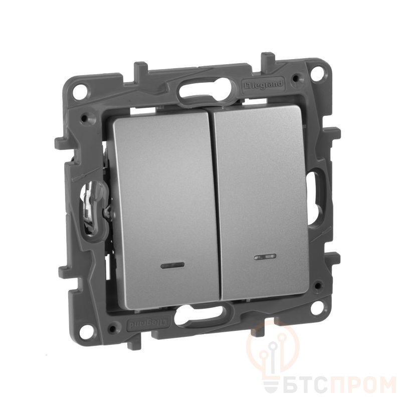 Переключатель 2-кл. СП Etika Plus 10А IP20 250В 10AX с подсветкой безвинтов. зажимы механизм алюм. IEK 672416
