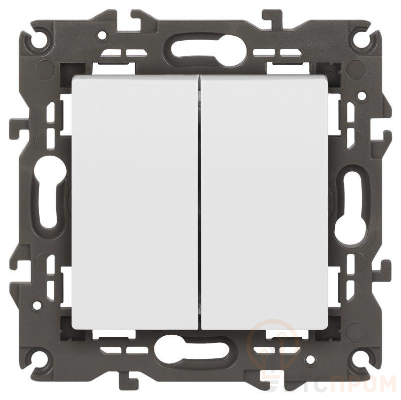 Переключатель 2-клавишный проходной серии Эра Elegance цвет белый матовый 14-1106-01М. Характеристики 10А 250В. Оснащён автоматическими клеммами для надёжной фиксации жил кабеля в механизме. Рамки приобретаются отдельно.