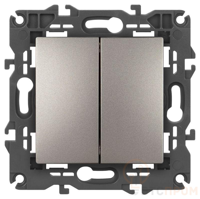 Переключатель 2-клавишный проходной серии Эра Elegance цвет титан 14-1106-16. Характеристики 10А 250В. Оснащён автоматическими клеммами для надёжной фиксации жил кабеля в механизме. Рамки приобретаются отдельно.