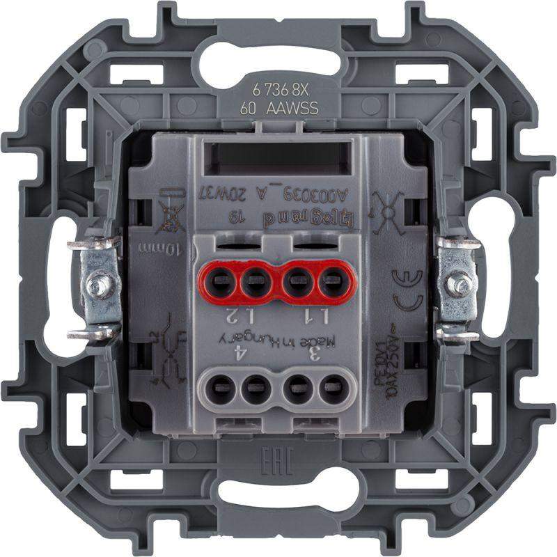 Переключатель промежуточный одноклавишный Legrand Inspiria для скрытого монтажа, цвет "Антрацит", номинальный ток 10 А, напряжение ~250В. Предназначен для установки в электрических сетях жилых и общественных зданий и используется для управления приборами освещения, вентиляции и т.д. Используется для управления нагрузкой с трех или более мест. Особенности изделия: - Компактный механизм с глубиной всего 20 мм. комфортно размещается в различных монтажных коробках. - Материал клавиши - глянцевый пластик АБС, стоек к выгоранию и загрязнениям. - Все токоведущие части выключателя имеют защиту от случайного прикосновения. - Для подсоединения проводов используются винтовые зажимы. - Улучшенная эргономика снижает вероятность искрения при коммутации светодиодов. - Ход клавиши короткий, не громкий.