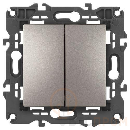 Переключатель перекрёстный/промежуточный двойной серии Эра Elegance скрытой установки цвет титан 14-1112-16. Характеристики 10А 250В. Винтовой зажим. Рамки приобретаются отдельно.