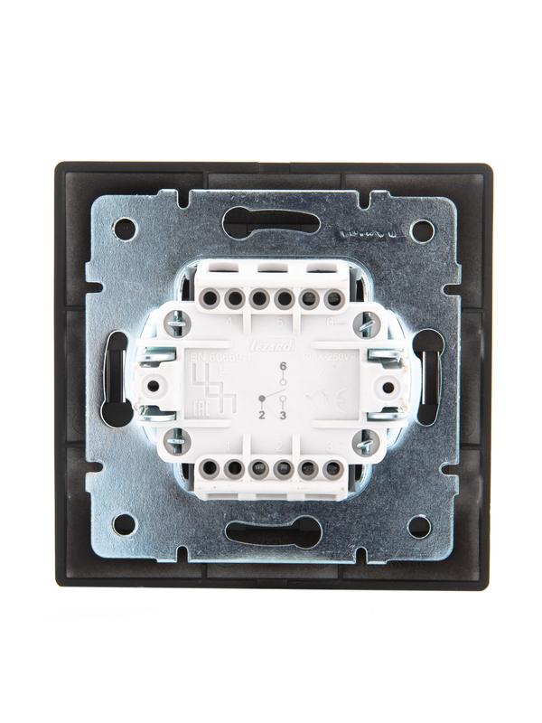 –Переключатель проходной 1-кл. 1п СП Mira 10А IP20 со вставкой черн. бархат LEZARD 701-4242-105