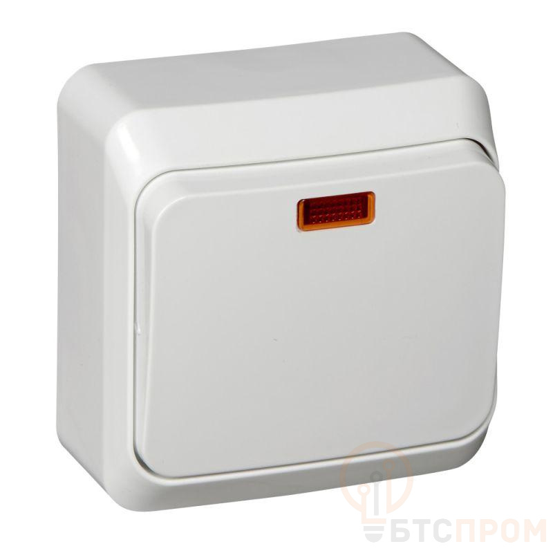 Переключатель Systeme Electric (ранее Schneider Electric) ЭТЮД (белый, открытой установки) одноклавишный, с подсветкой и предназначен для применения в сетях до 250В, на ток до 10А, что делает его легко находимым при отсутствии освещения. Переключатель позволяет управлять одним источником света из двух точек. Сделано в России.