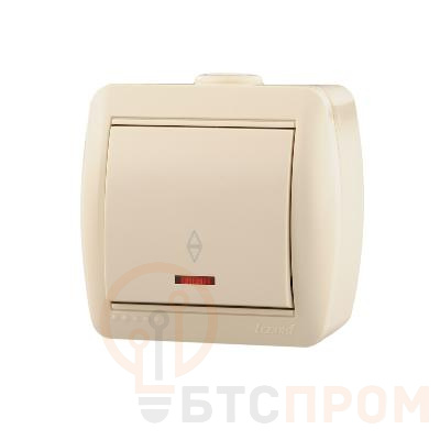 Переключатель проходной 1-кл. ОП Nata 10А с подсветкой крем. LEZARD 710-0300-114 фото в каталоге от BTSprom.by