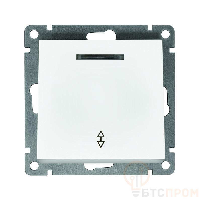 Переключатель проходной 1-кл. СП Афина 10А IP20 с подсветкой механизм бел. Universal A0125 фото в каталоге от BTSprom.by