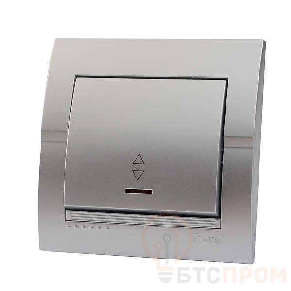 Переключатель проходной 1-кл. СП Deriy 10А IP20 с подсветкой серебр. метал. LEZARD 702-2828-114 фото в каталоге от BTSprom.by